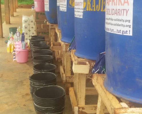 • Verteilung von Hygienesets an Familien: Stoffmaske (lokal hergestellt und mehrfach verwendbar), Handseife, Eimer-10L, Wischlappen, Desinfektionsmittel